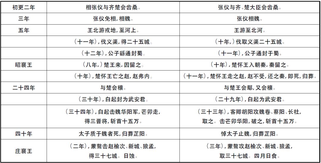 第三,《秦本纪》战国记事要比《秦表》丰富,但也有些较为重要的事件,仅仅在《秦表》中出现,而《秦本纪》战国记事却不载。此外,在牵扯到灾异时,《秦表》所记,大多远比《秦本纪》丰富且详细,但也存在一些《秦本纪》详于《秦表》的情况。